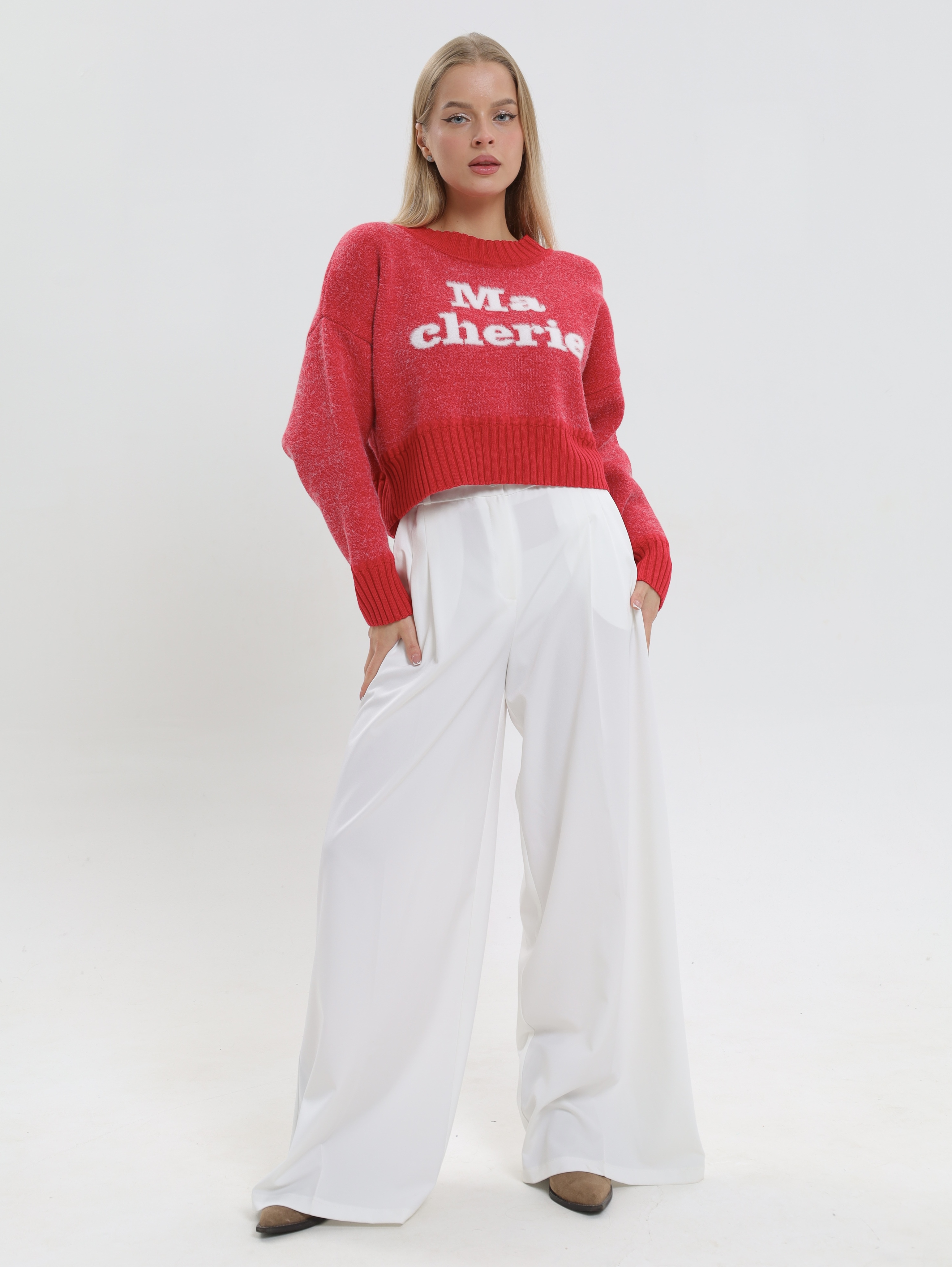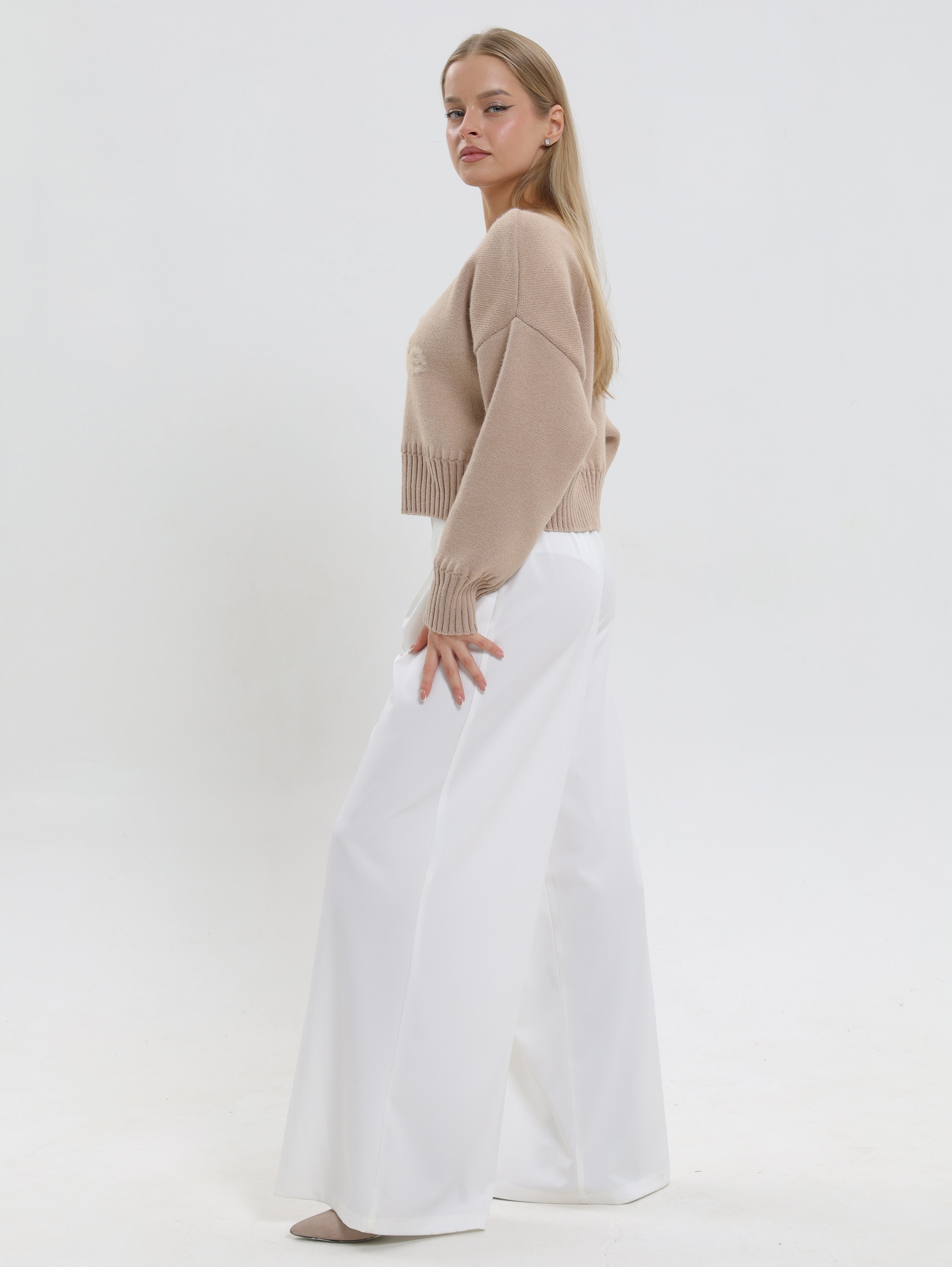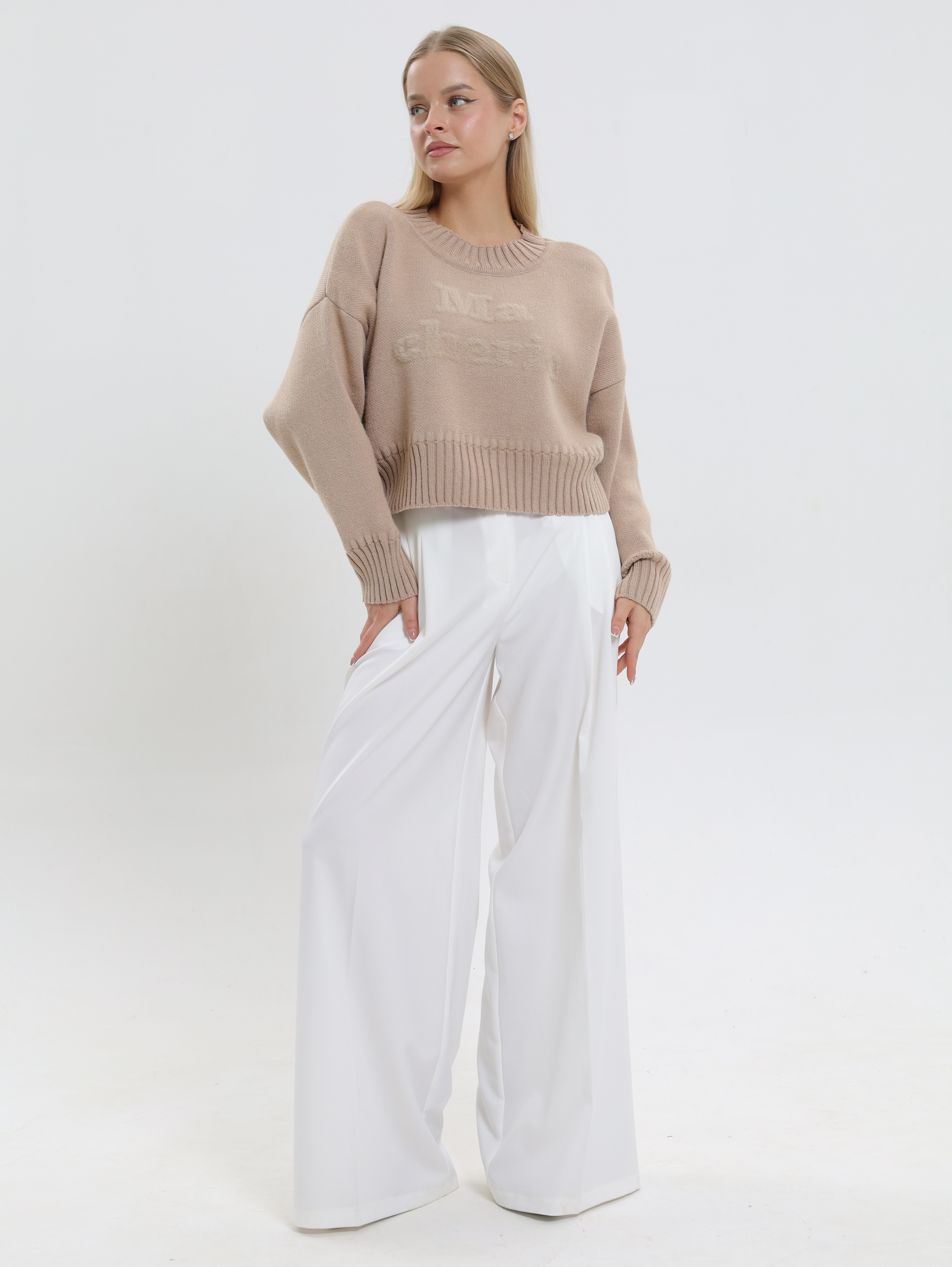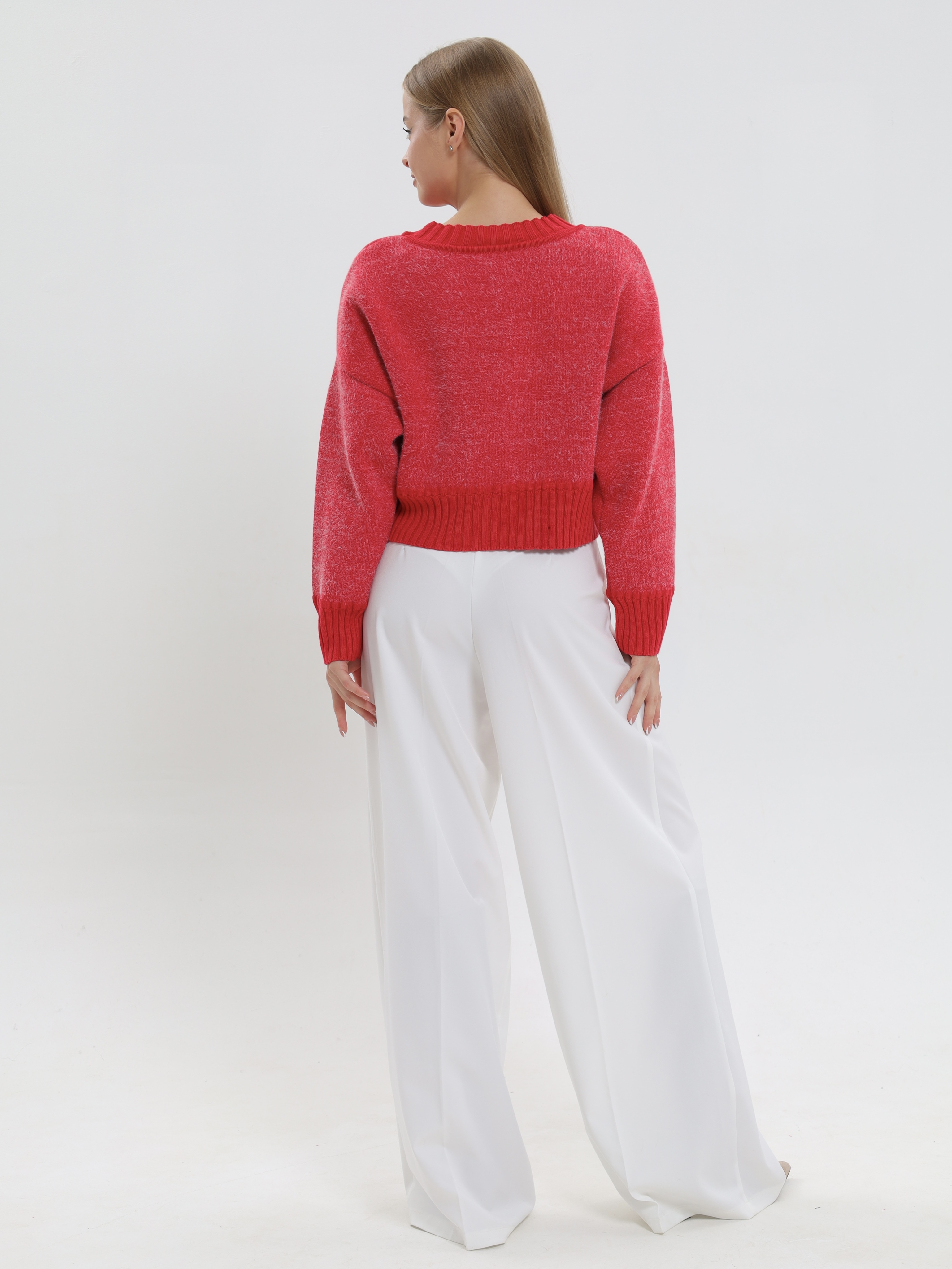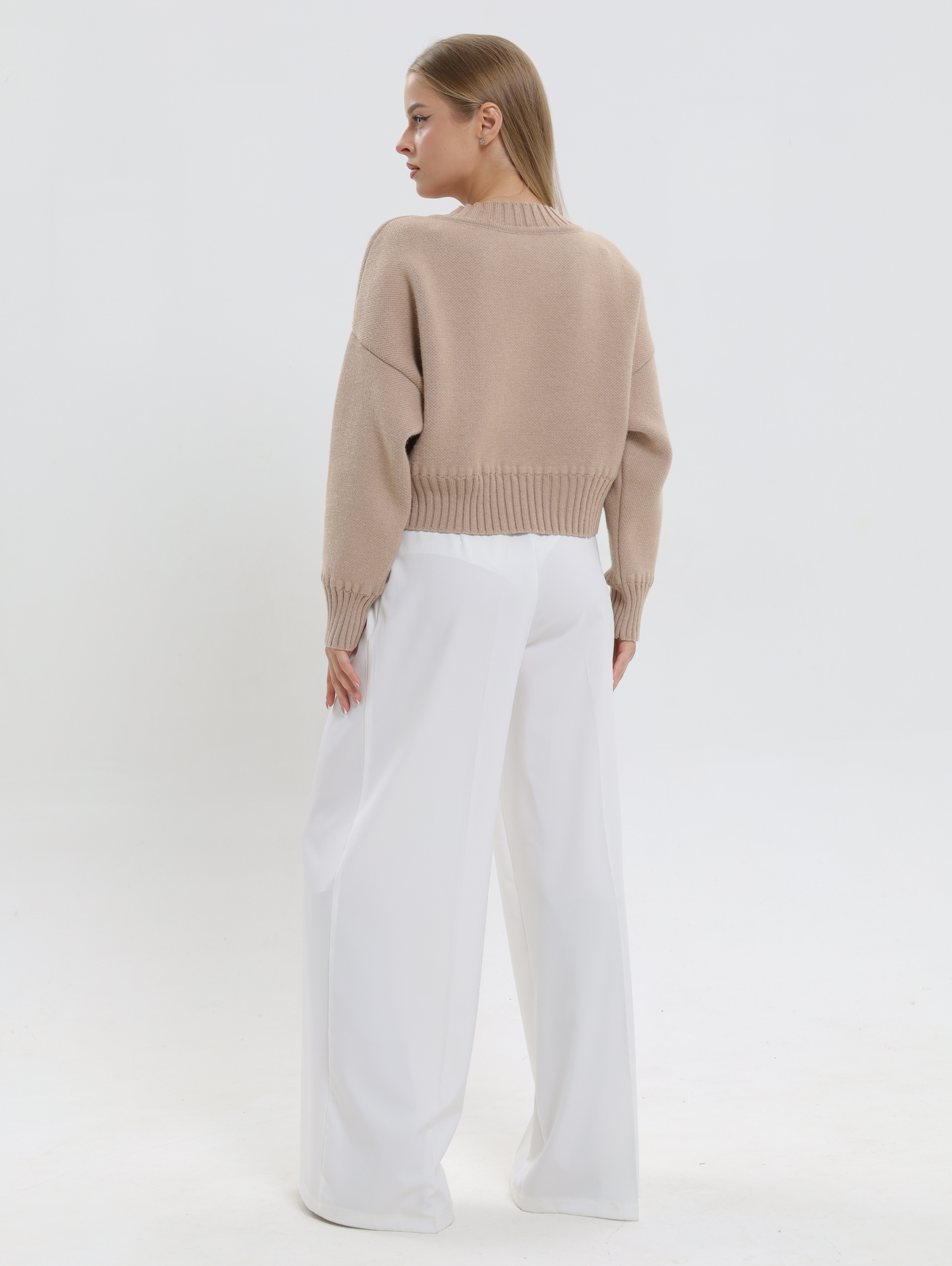 Укороченный фасон,визуально подчеркивает талию и идеально сочетается с завышенной талией брюк или юбки, создавая вытянутый и стройный силуэт.