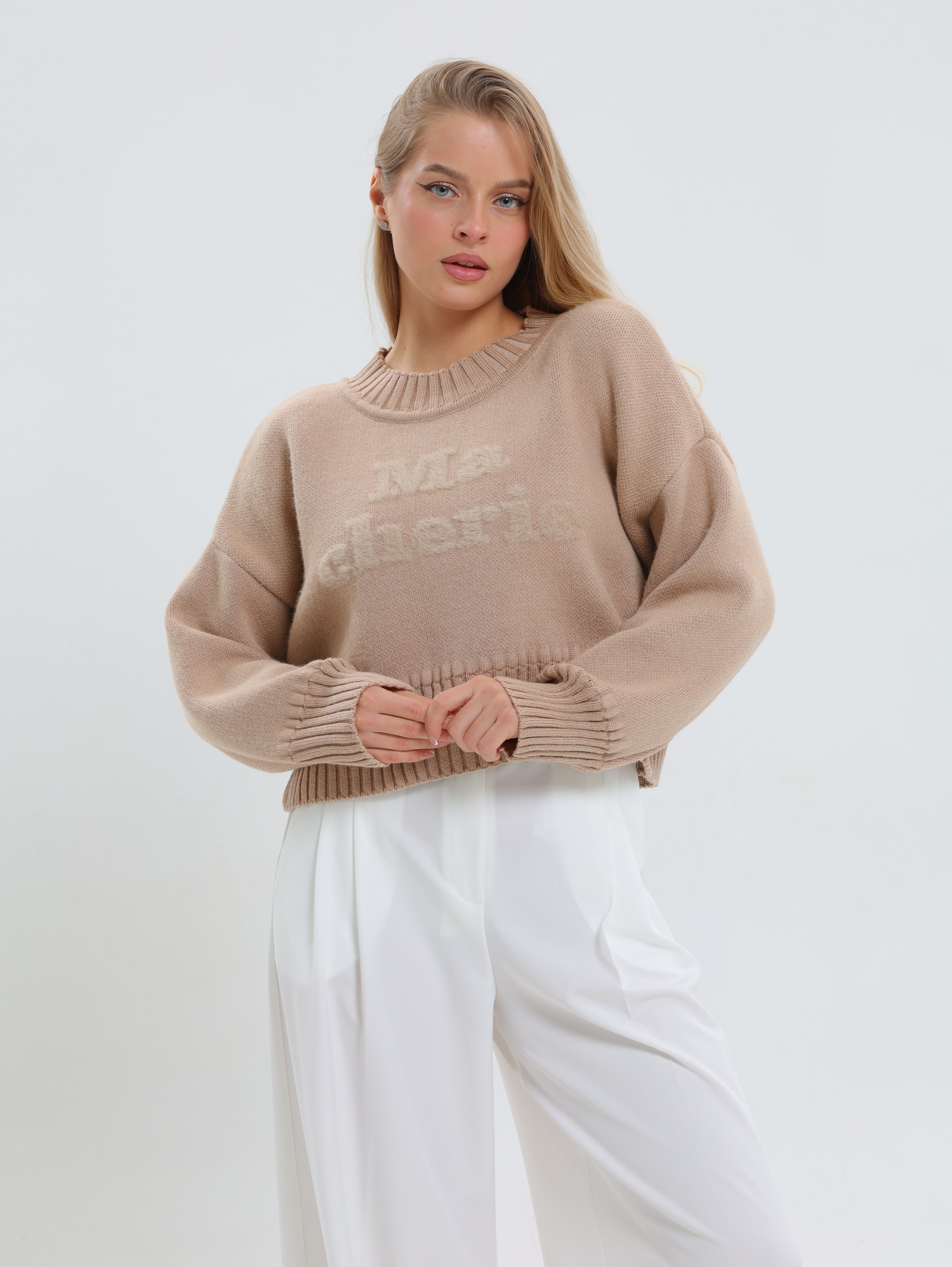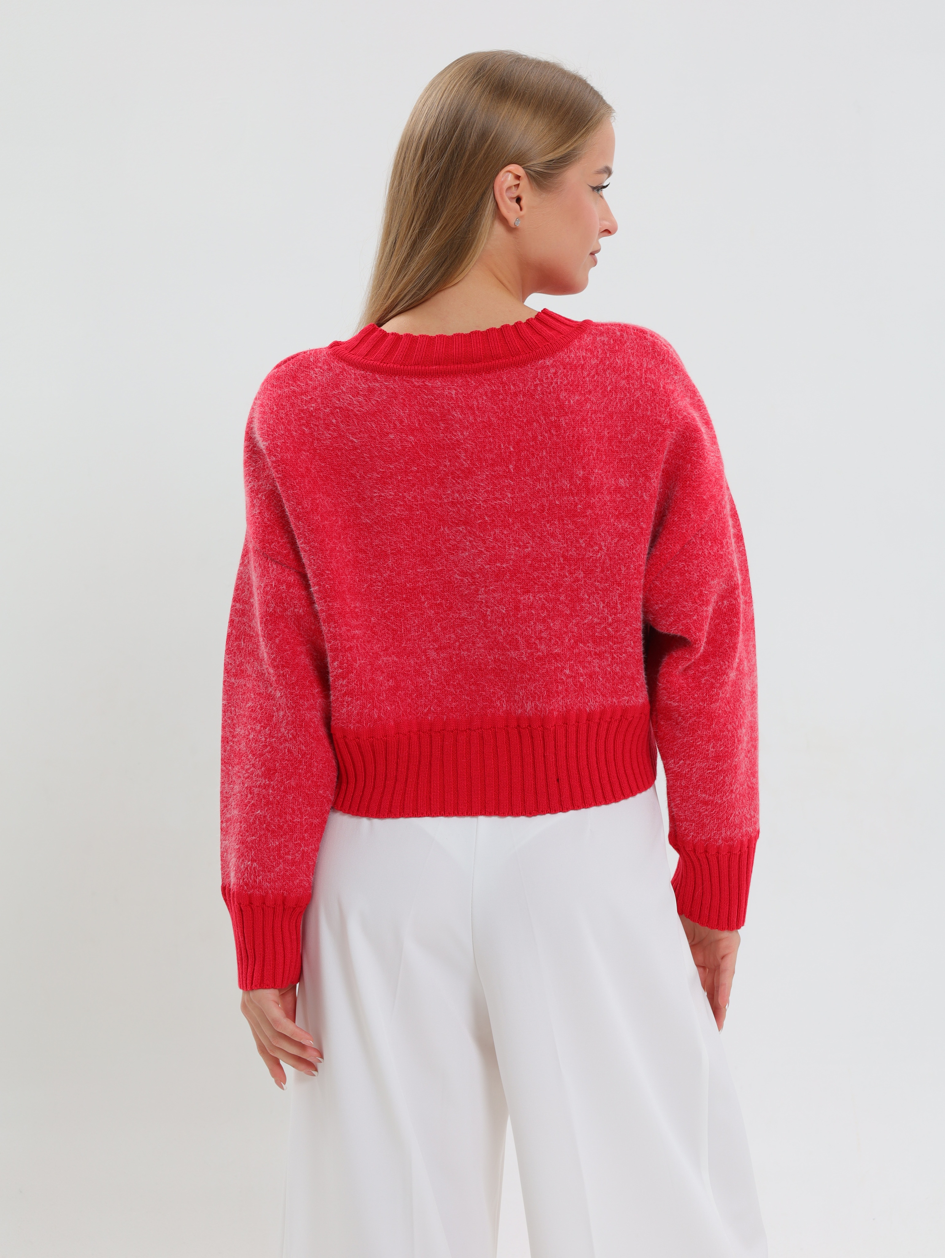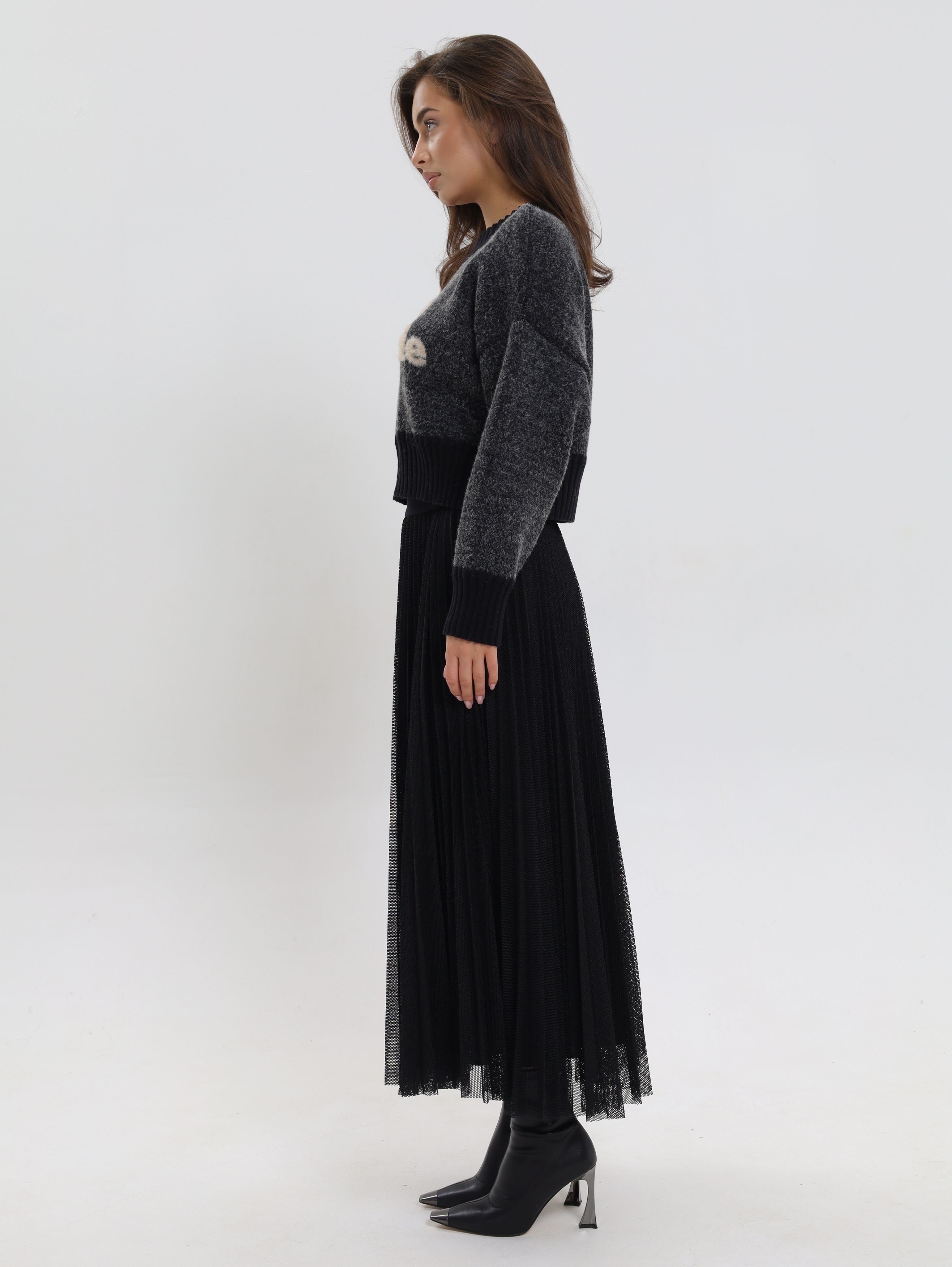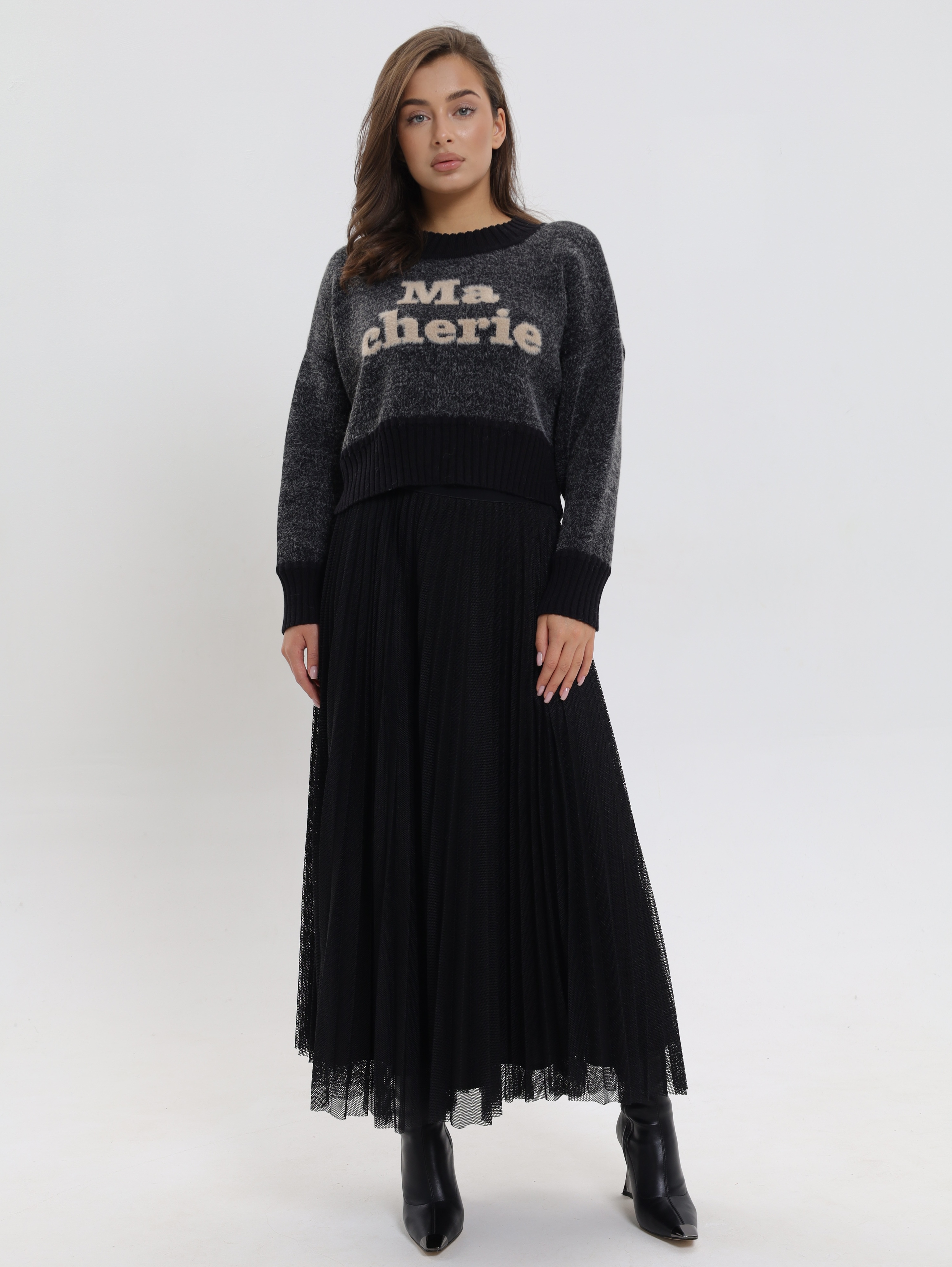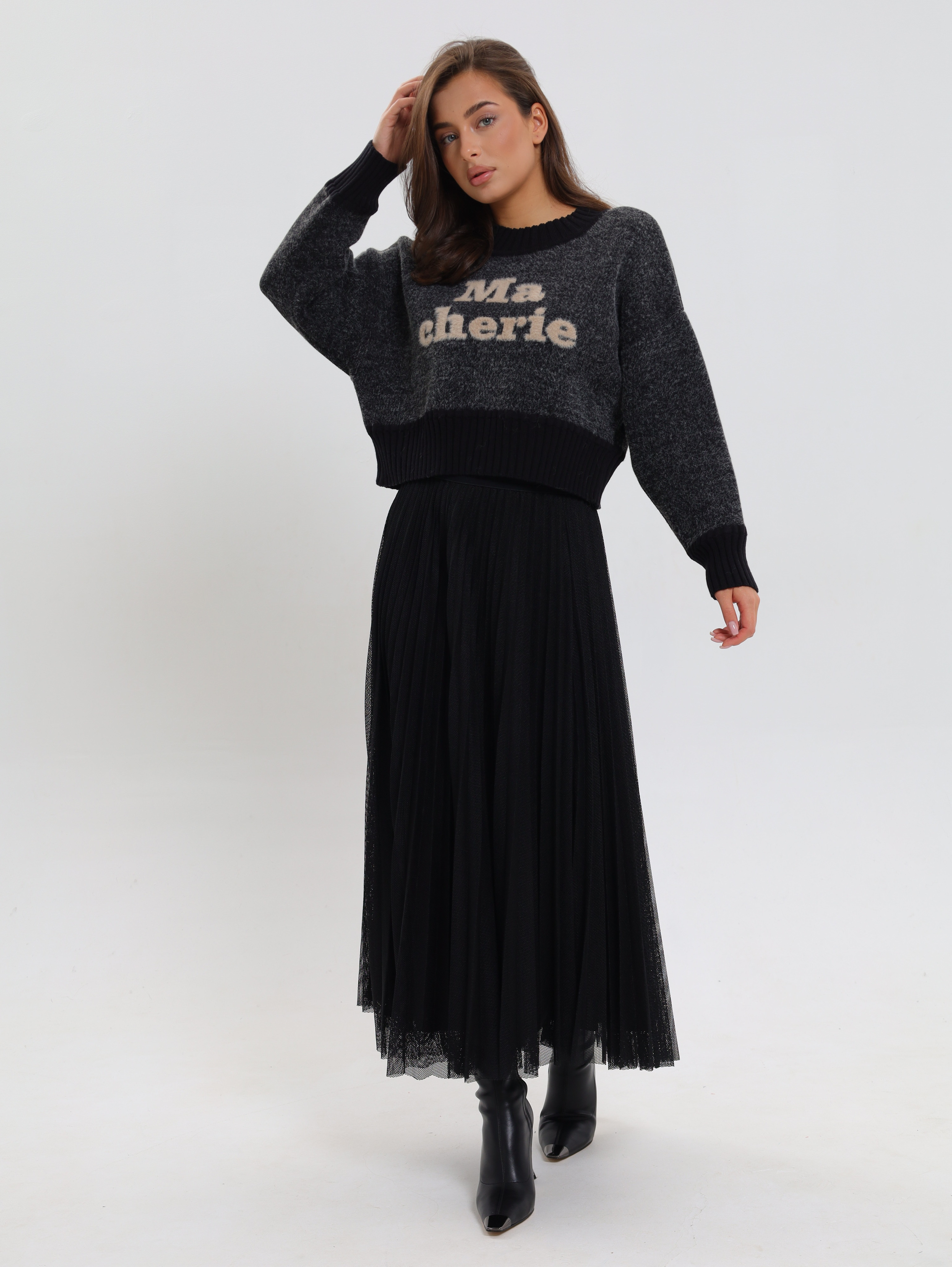 Укороченный фасон,визуально подчеркивает талию и идеально сочетается с завышенной талией брюк или юбки, создавая вытянутый и стройный силуэт.