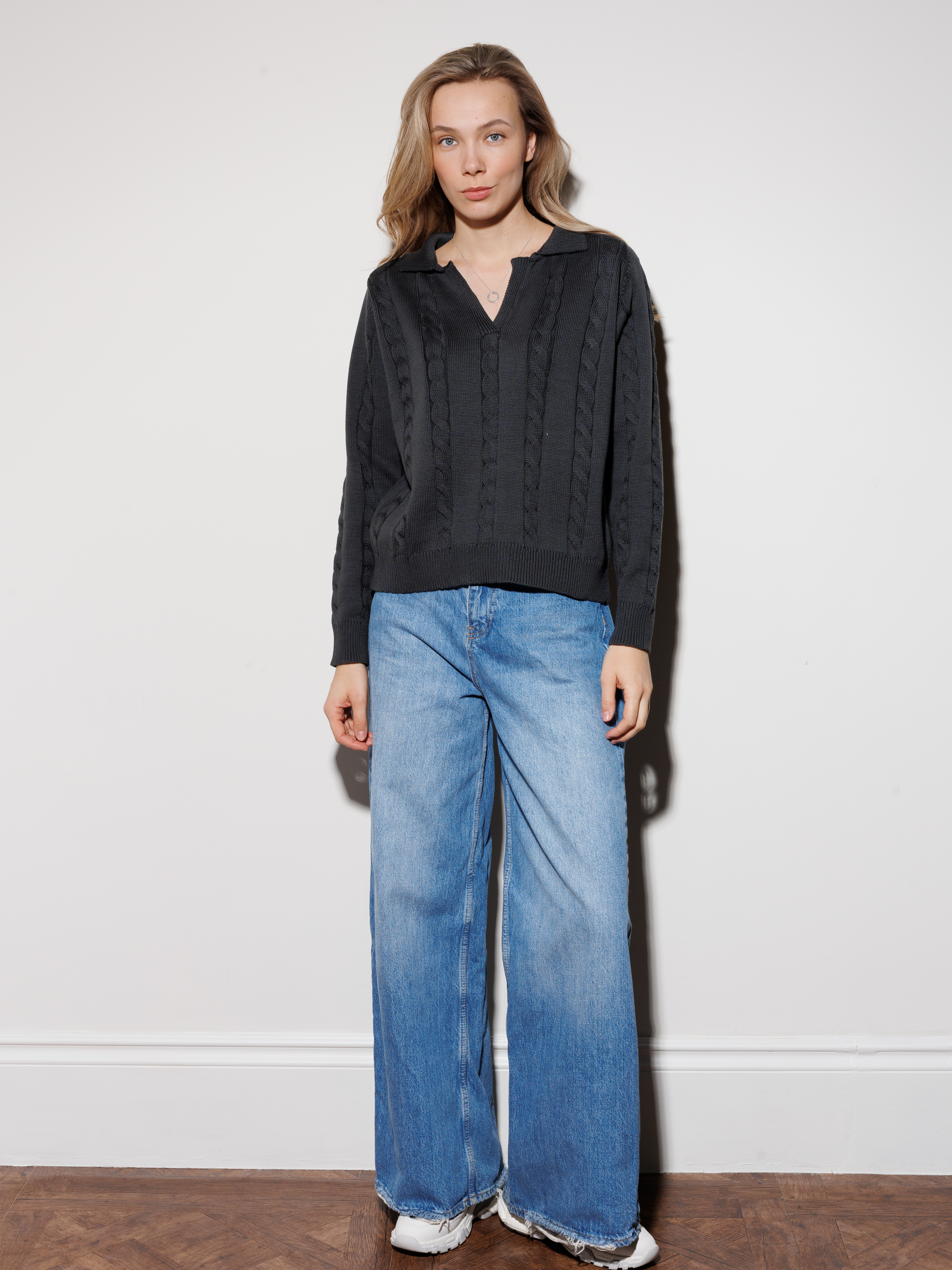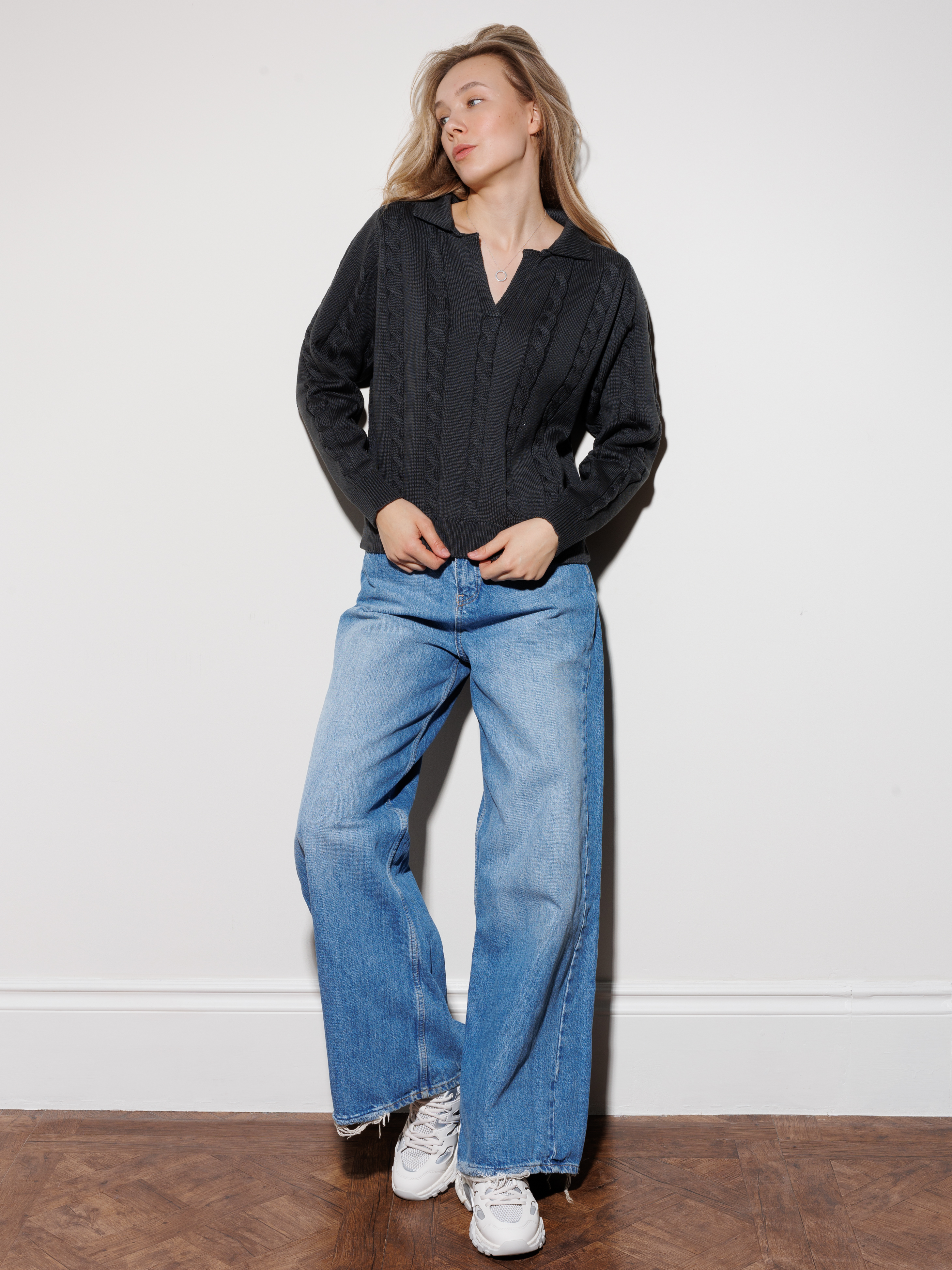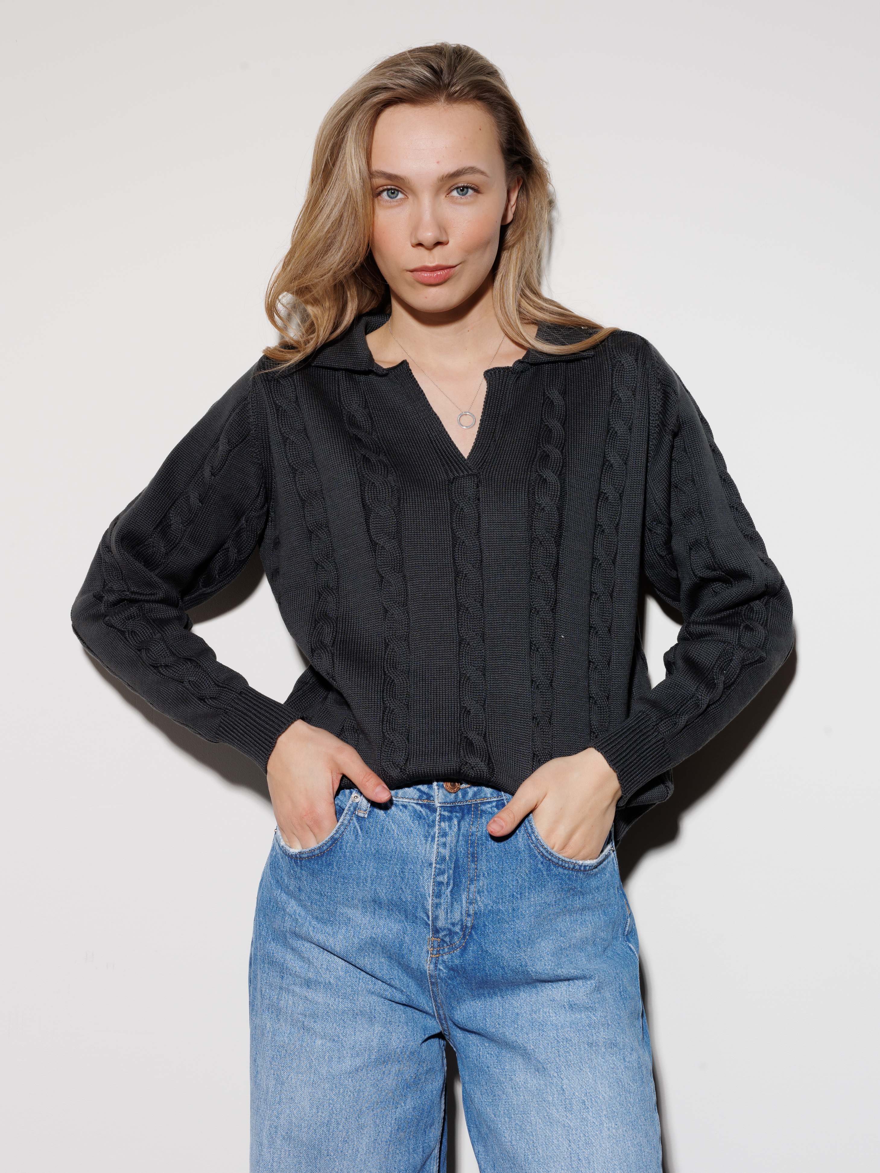 Рельефный узор «косы» делает джемпер визуально интересным и фактурным — такая деталь всегда привлекает внимание.