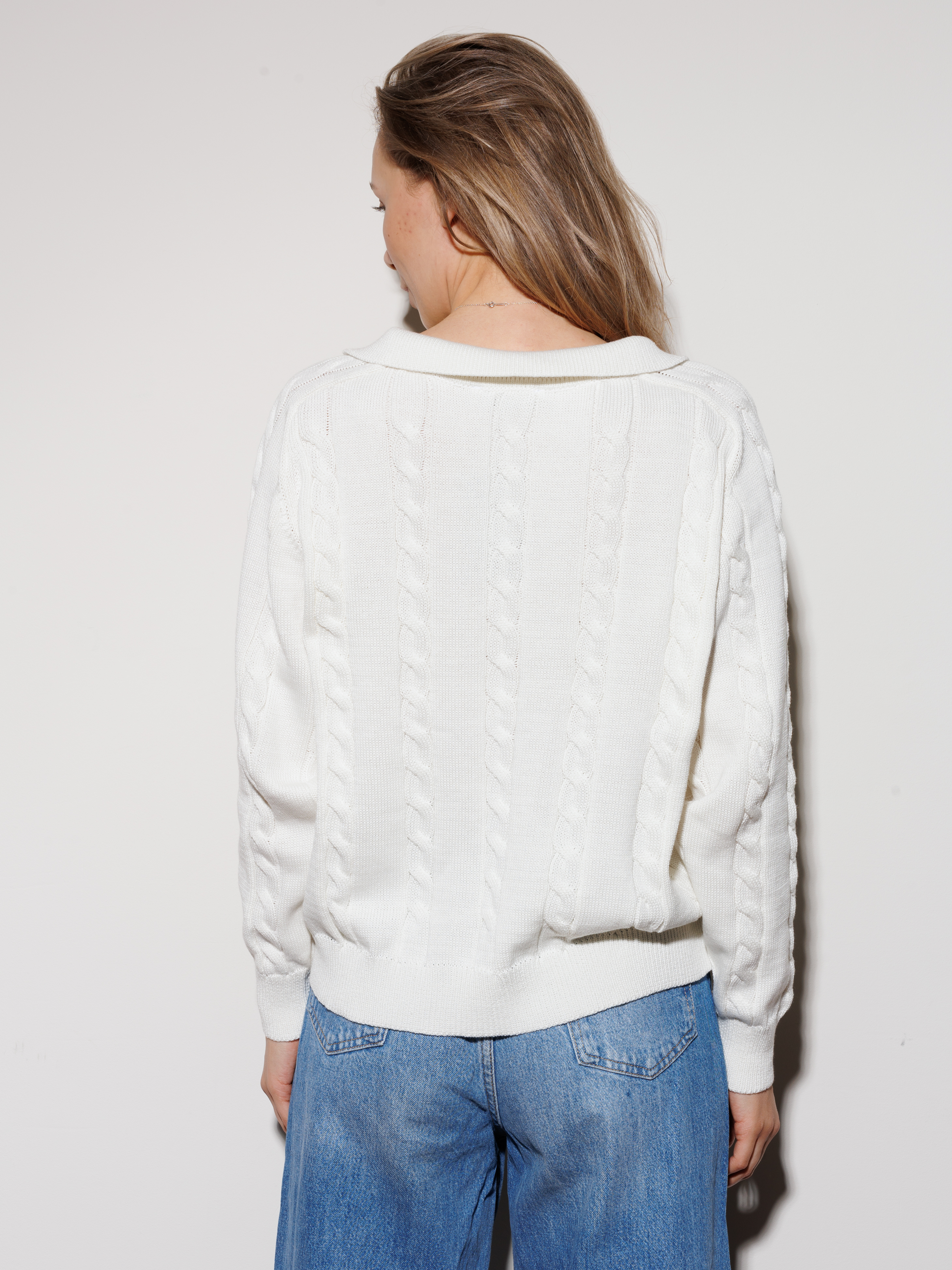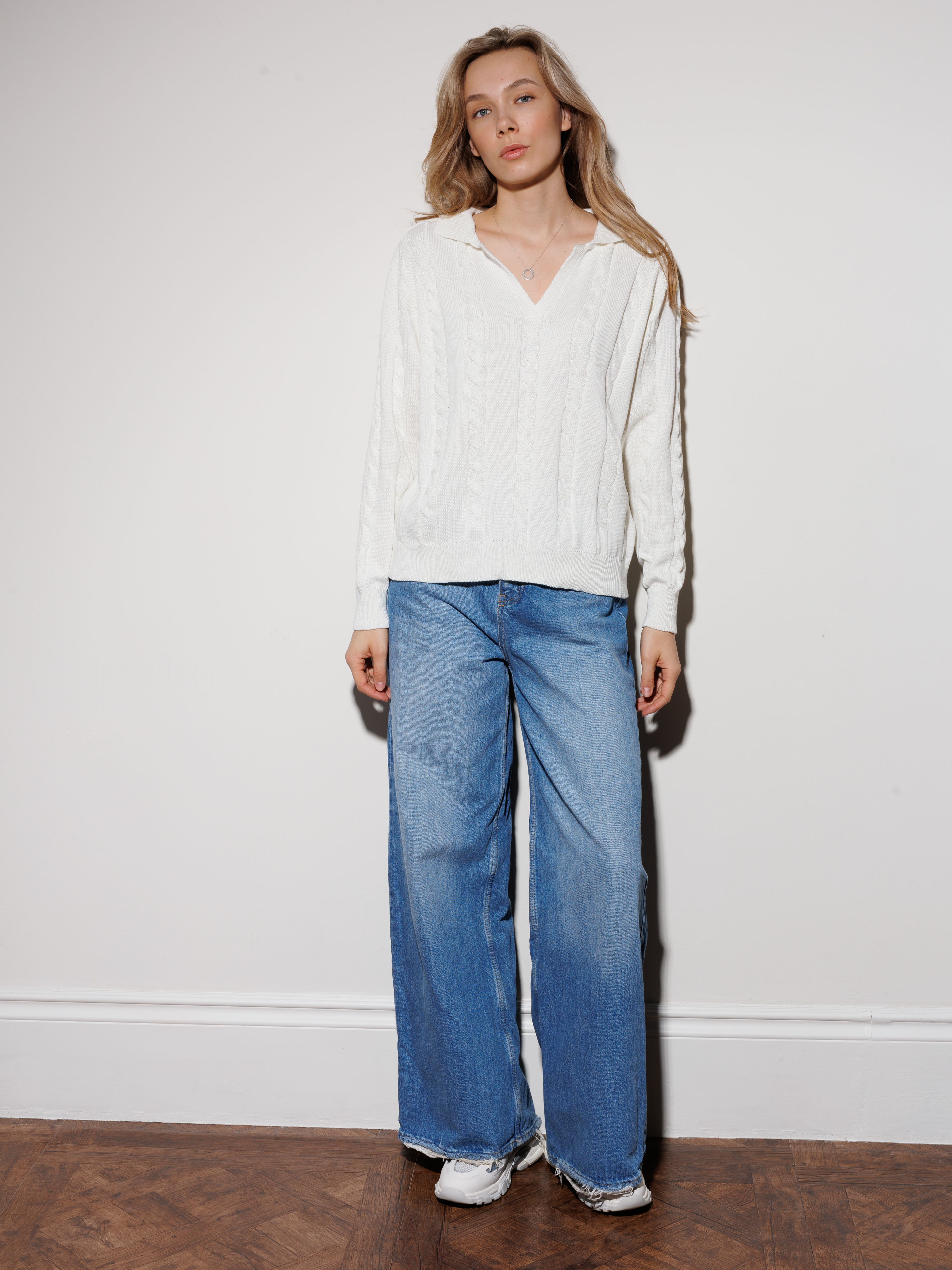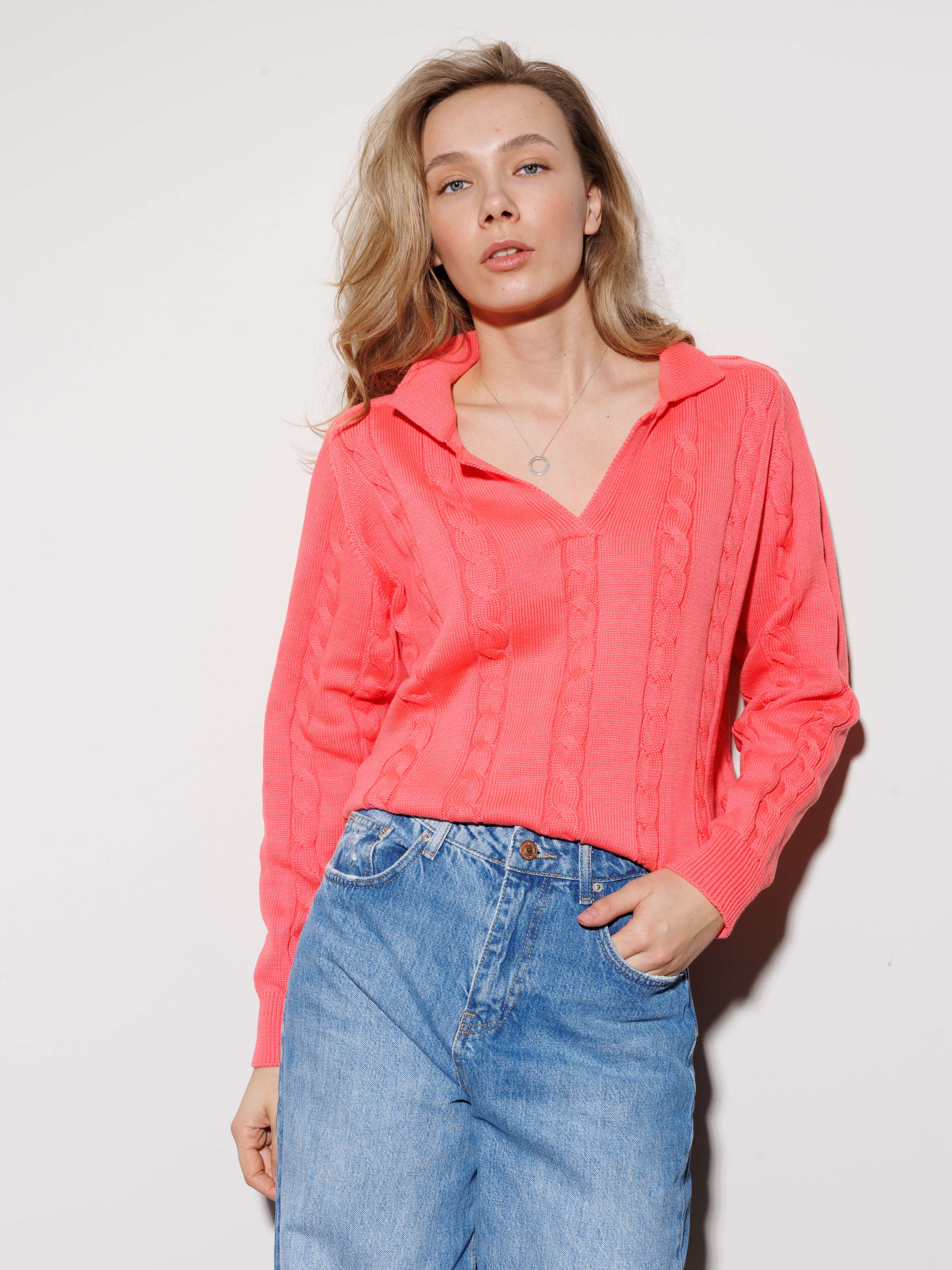 Рельефный узор «косы» делает джемпер визуально интересным и фактурным — такая деталь всегда привлекает внимание.
