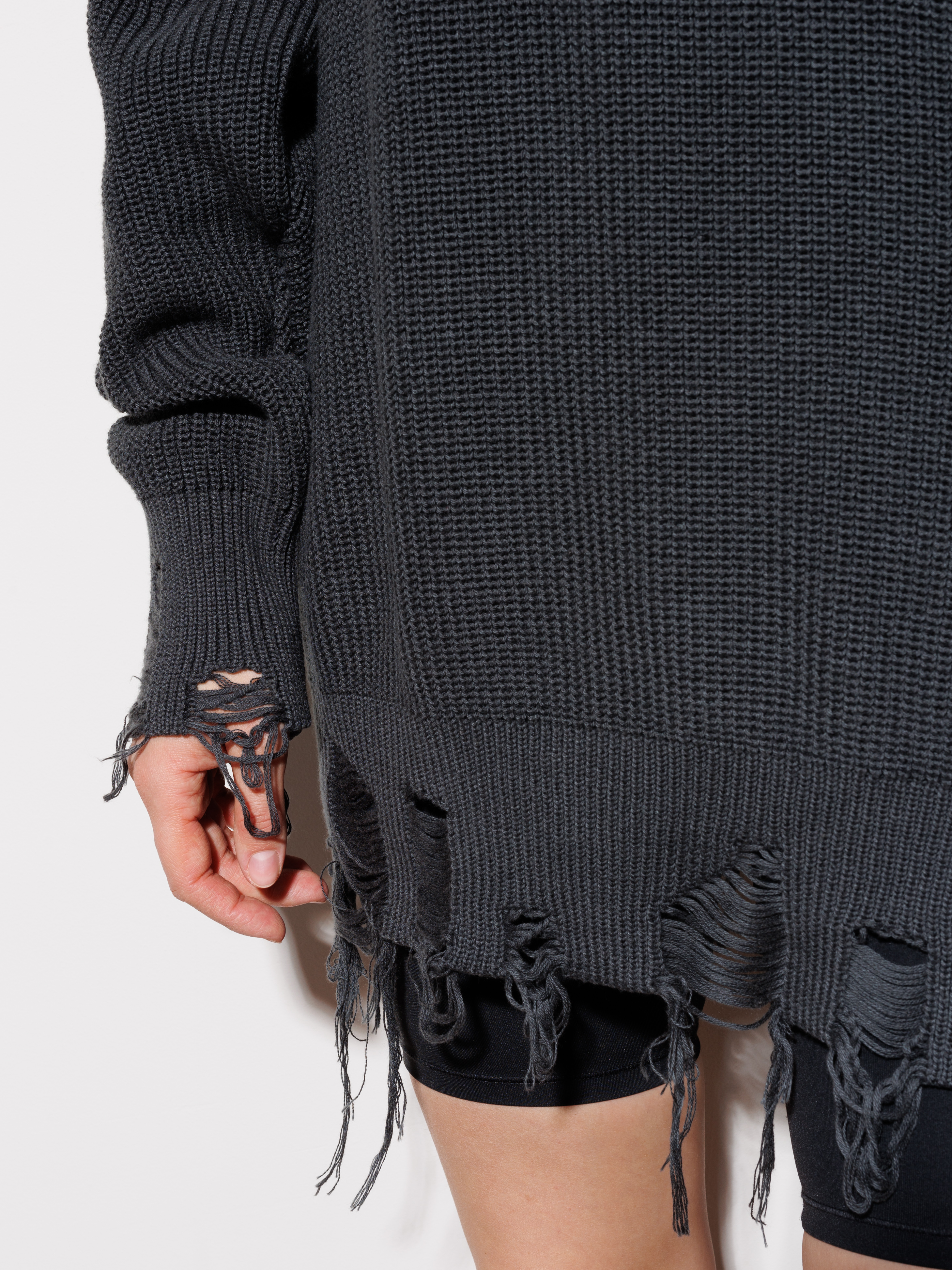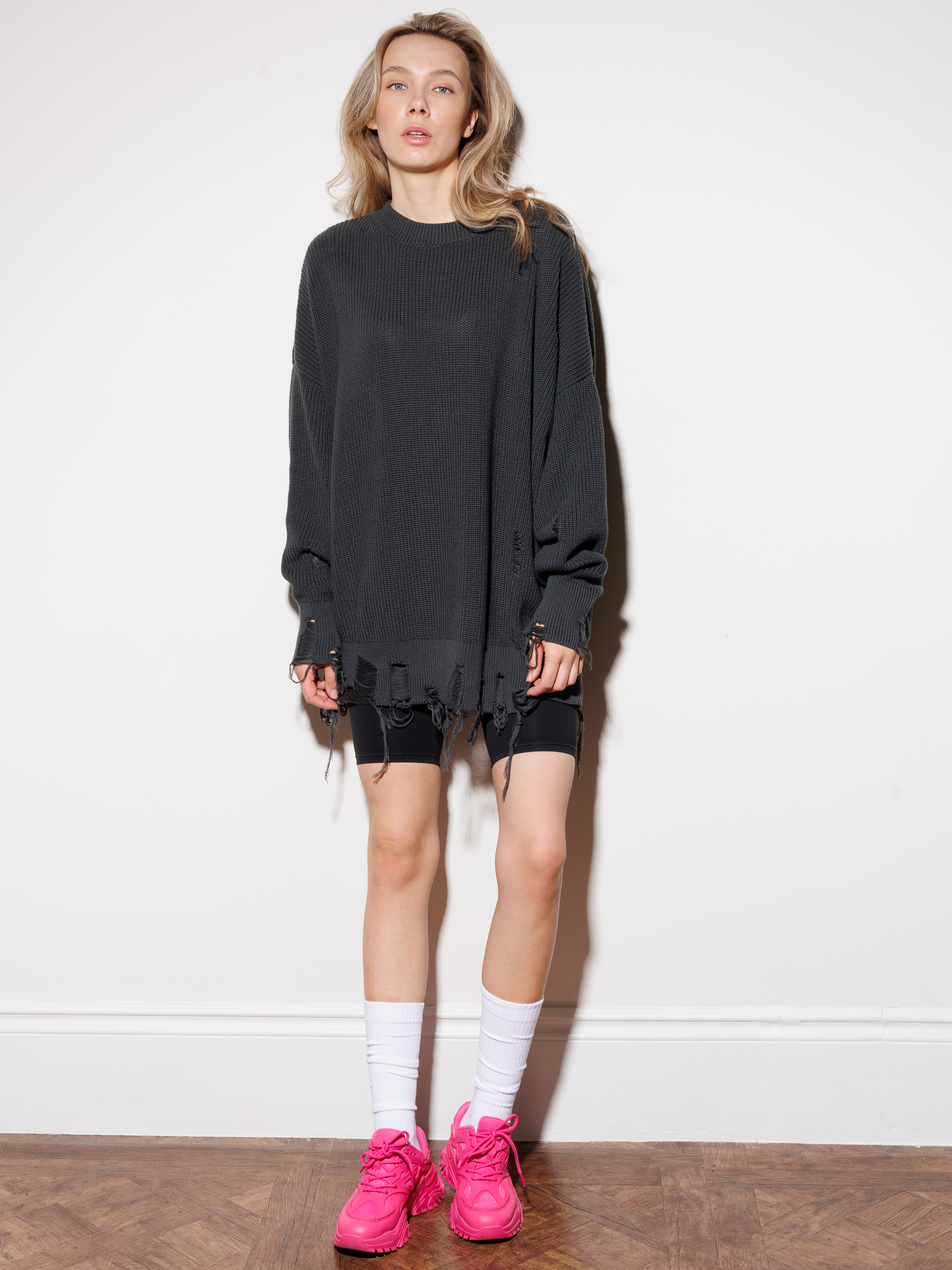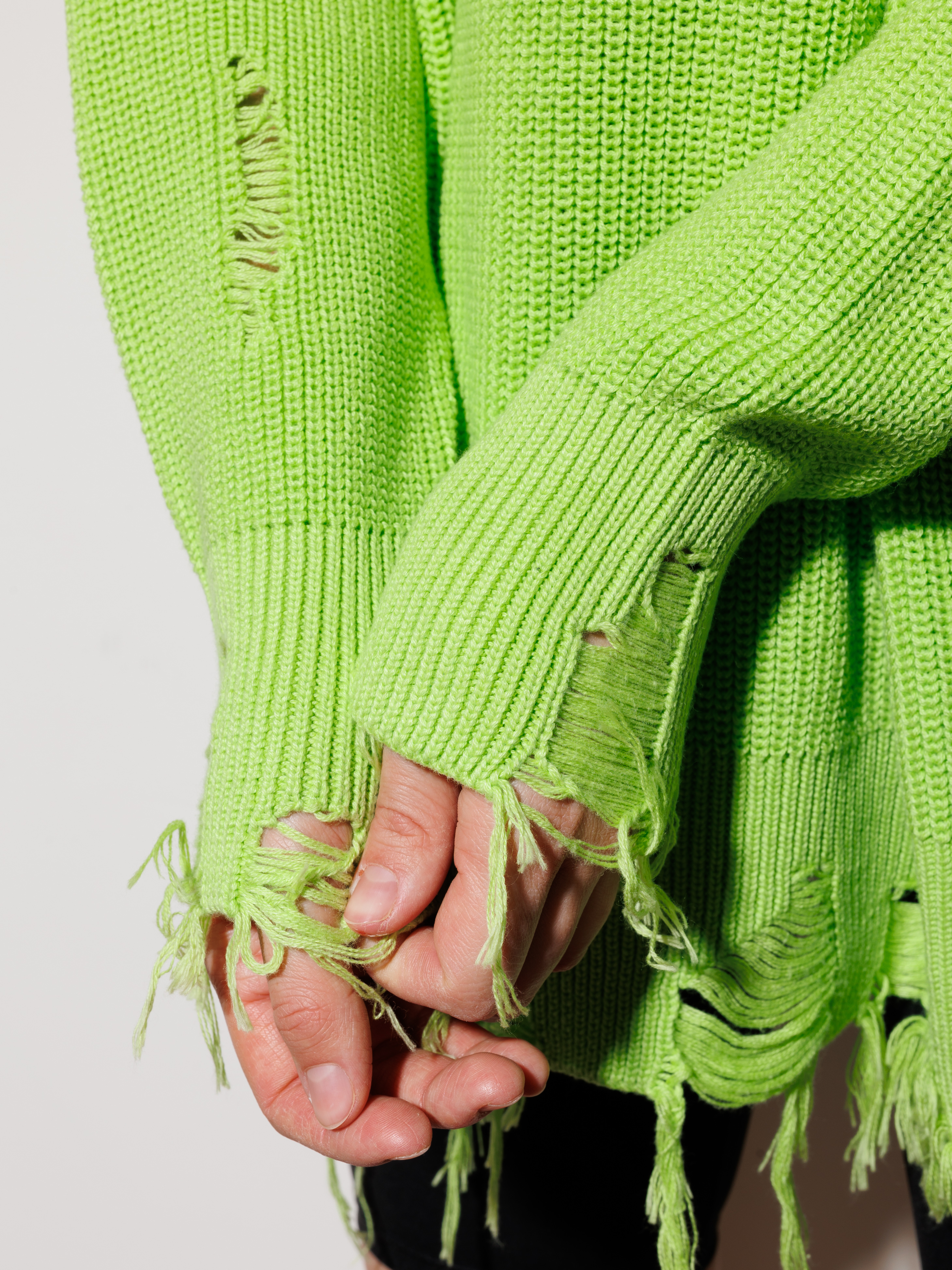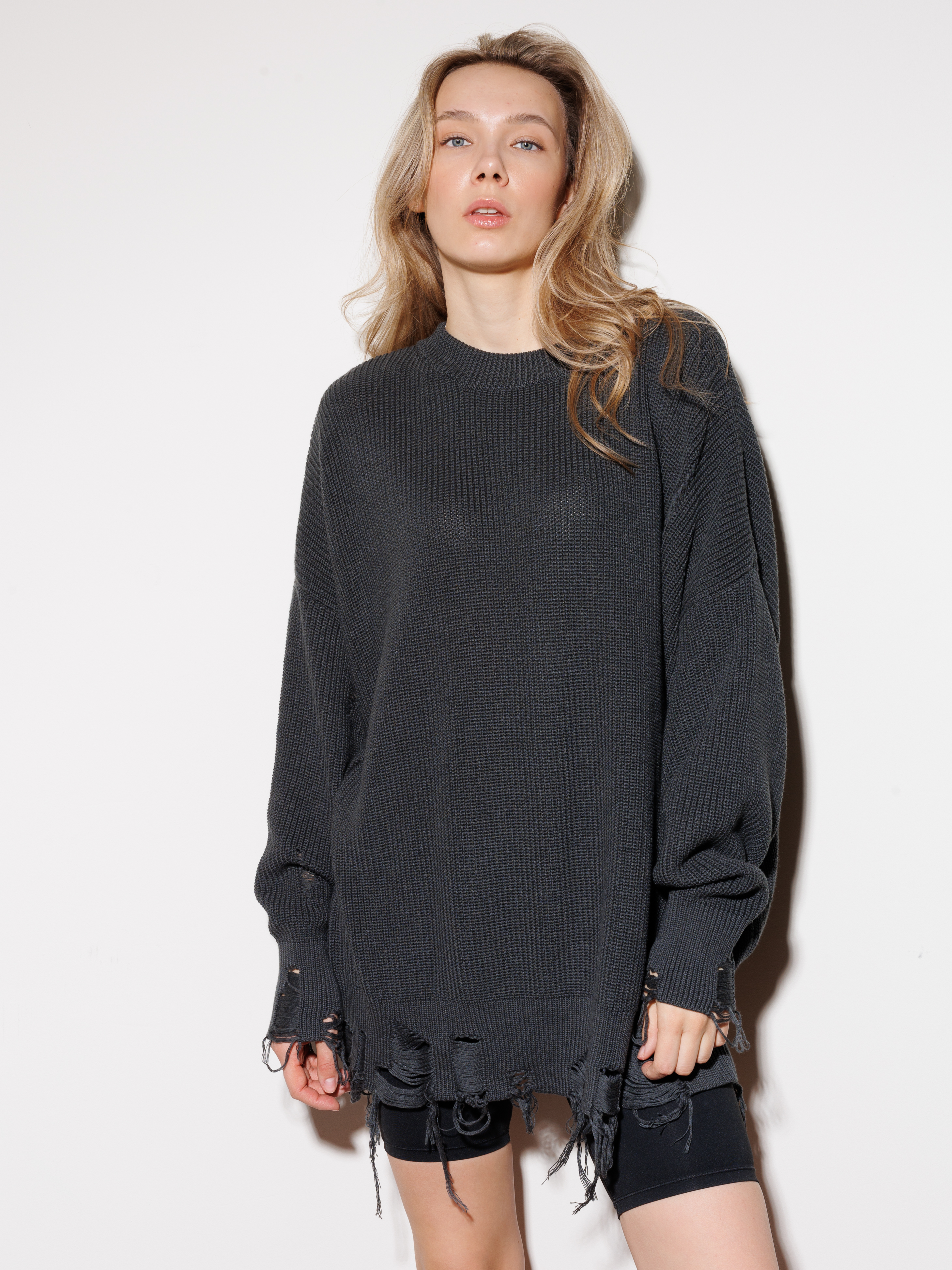 Рваные края по низу и на манжетах — это не дефект, а дизайнерский ход. Такая "случайная" деталь сразу выдает в вас знатока моды, ценящего уникальность.