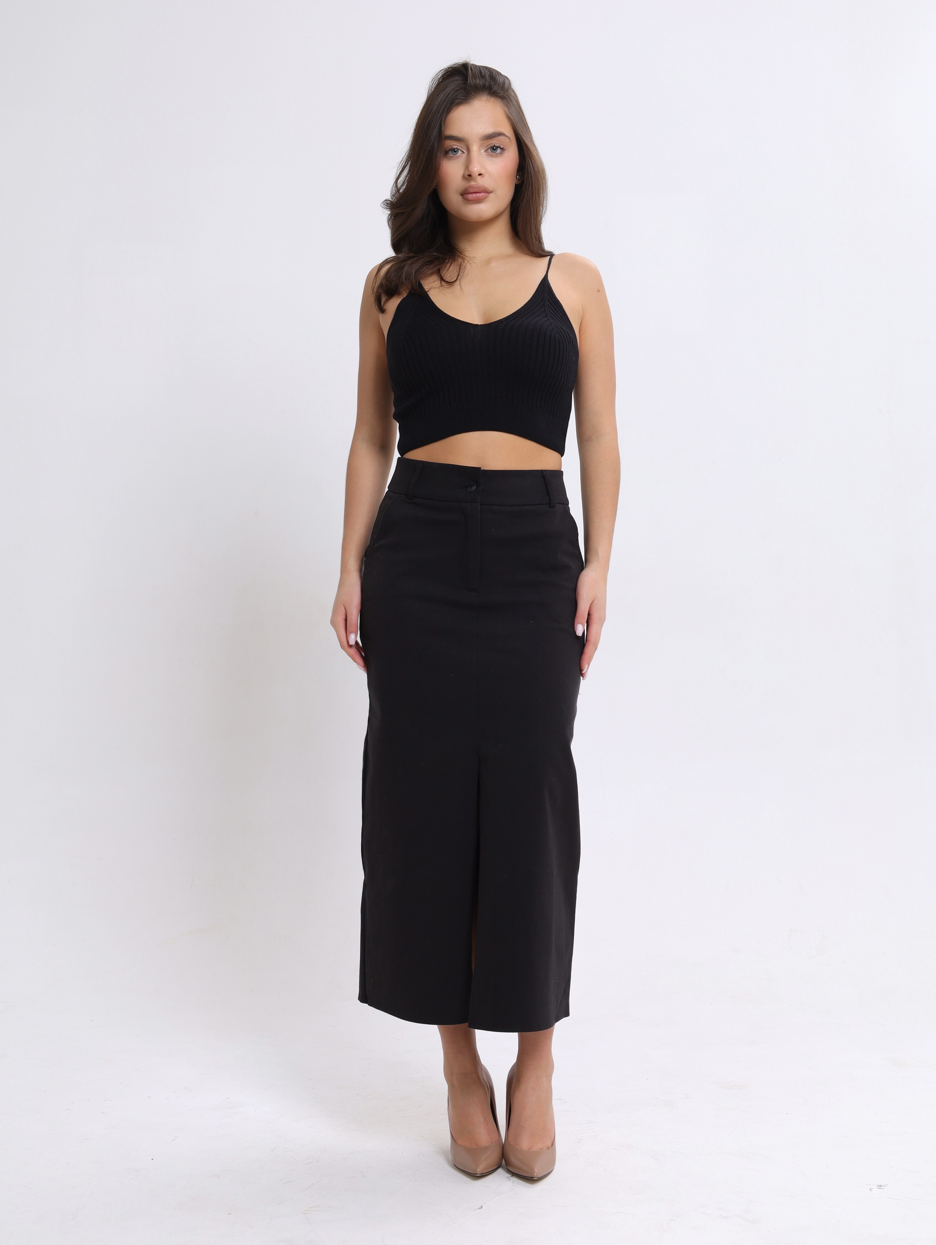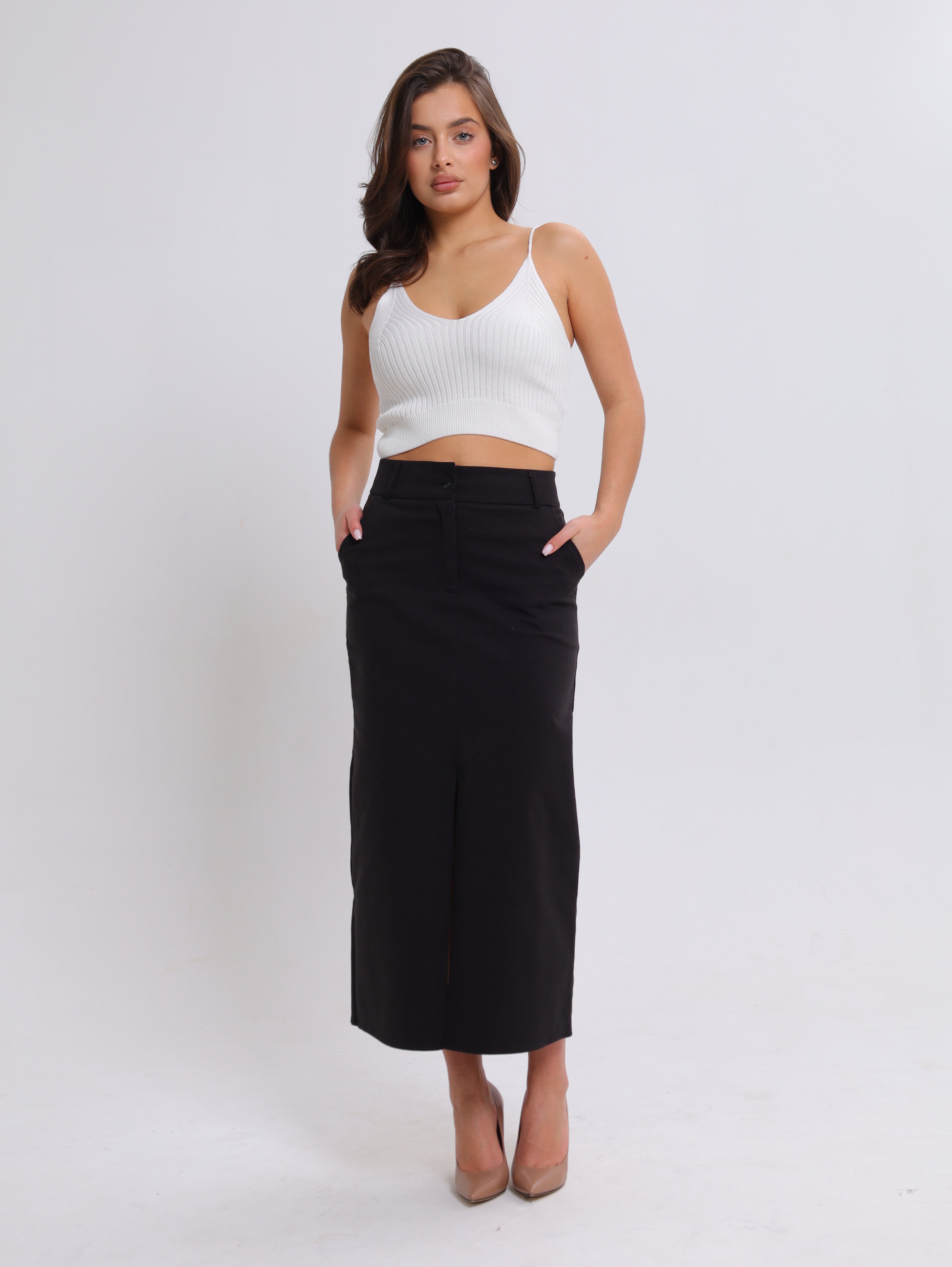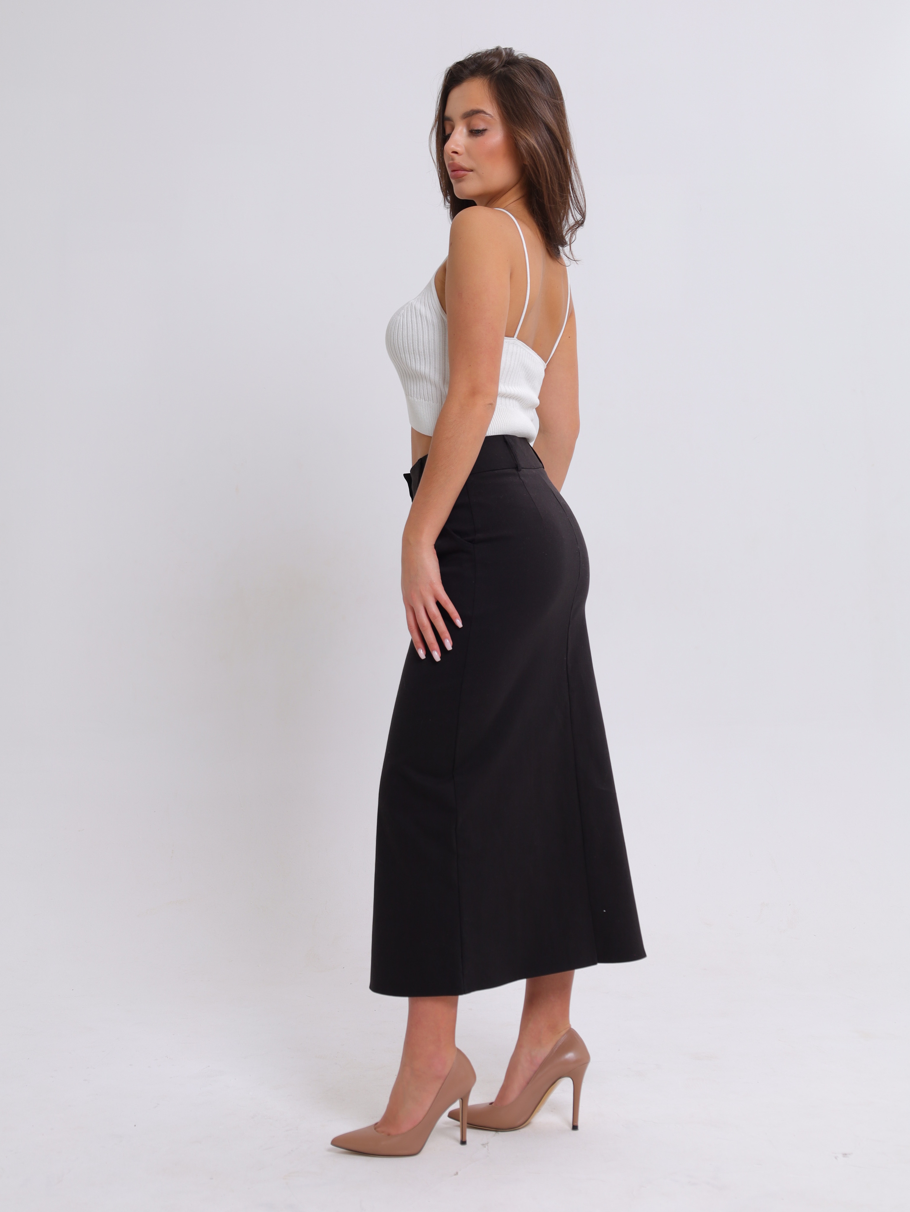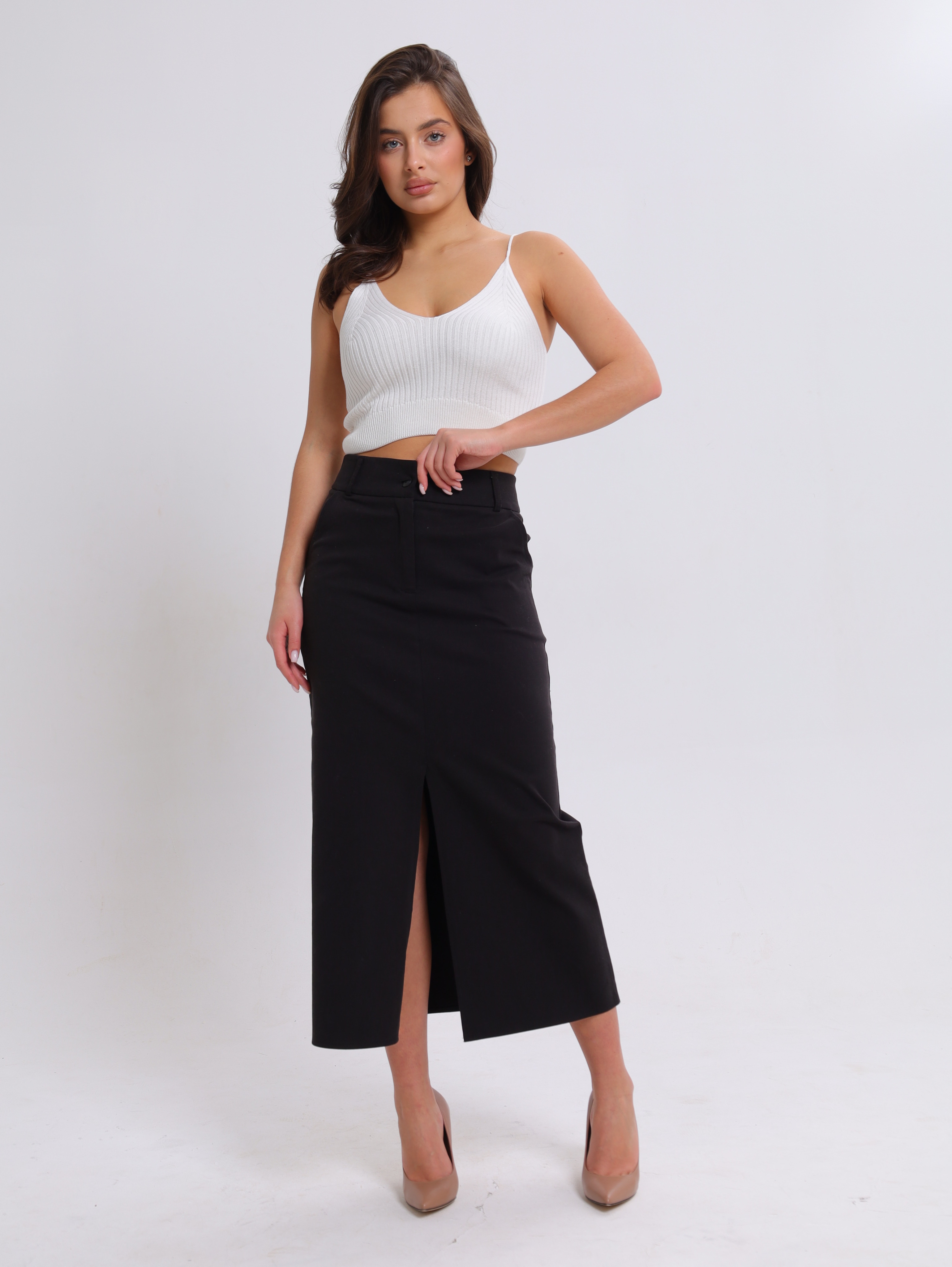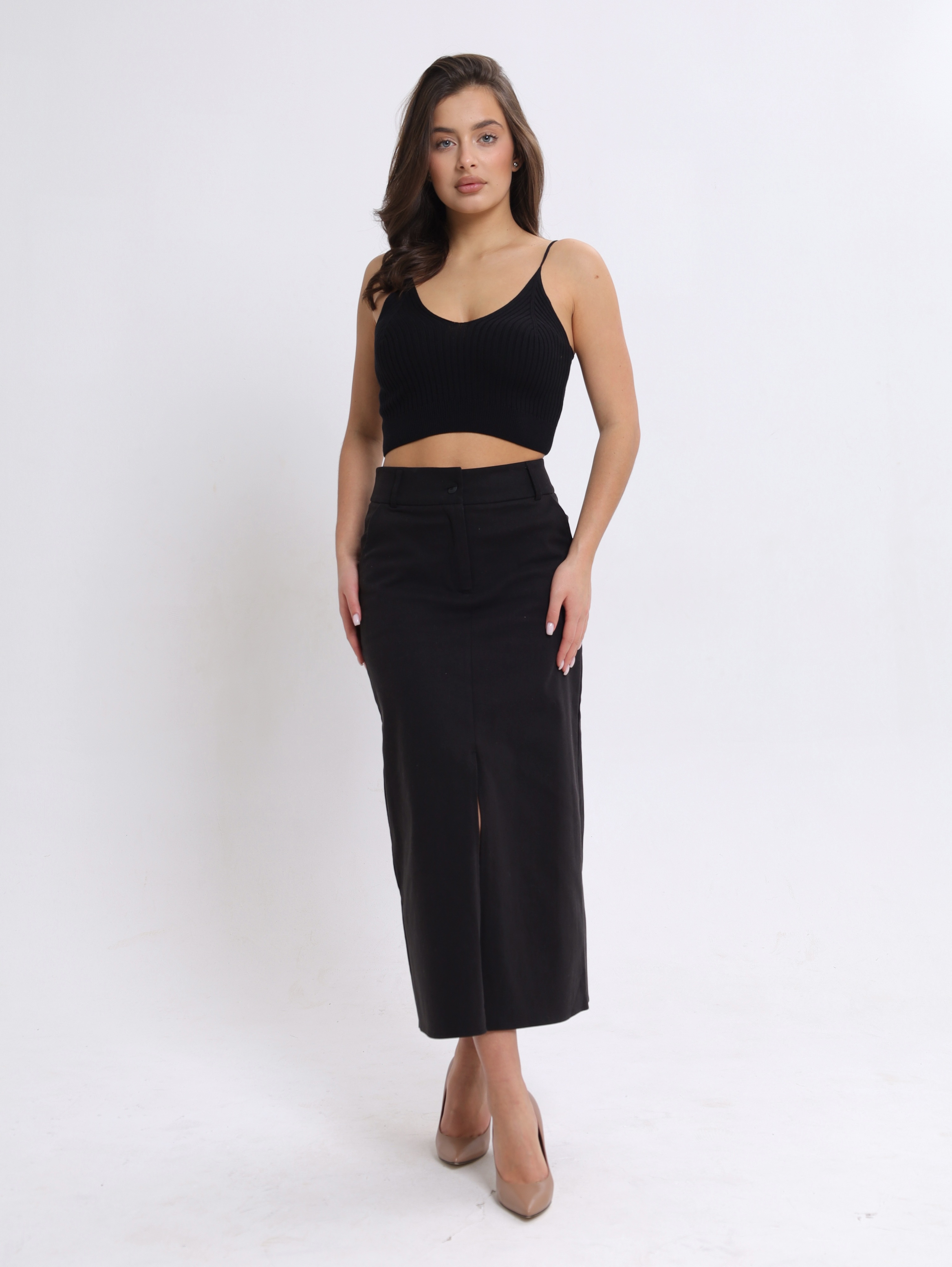 Вязаная текстура в рубчик придаёт топу особый шарм, делает его визуально интересным и приятным на ощупь.