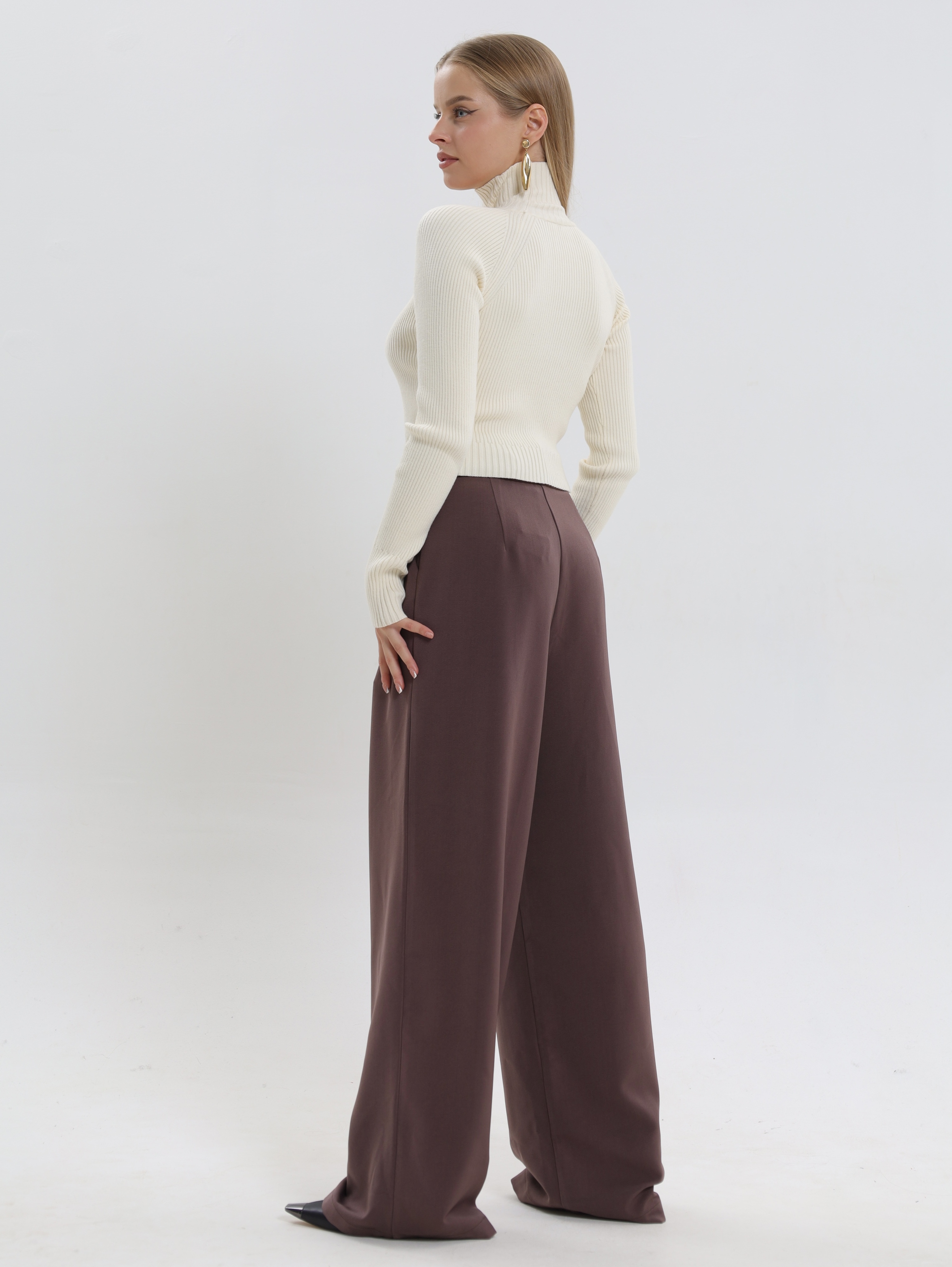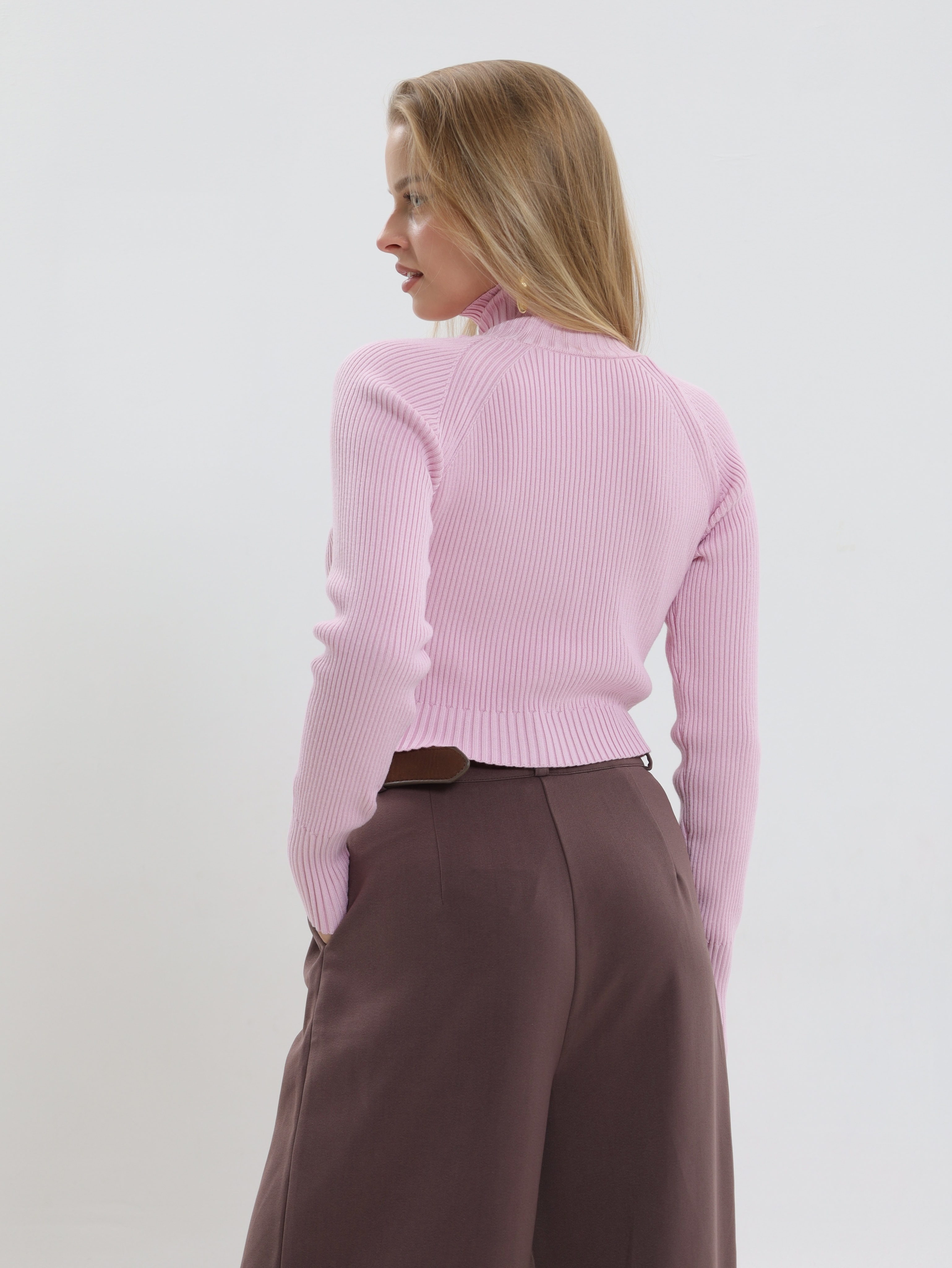 Фактурная вязка в рубчик подчёркивает силуэт, визуально стройнит и придаёт изделию особый шарм.