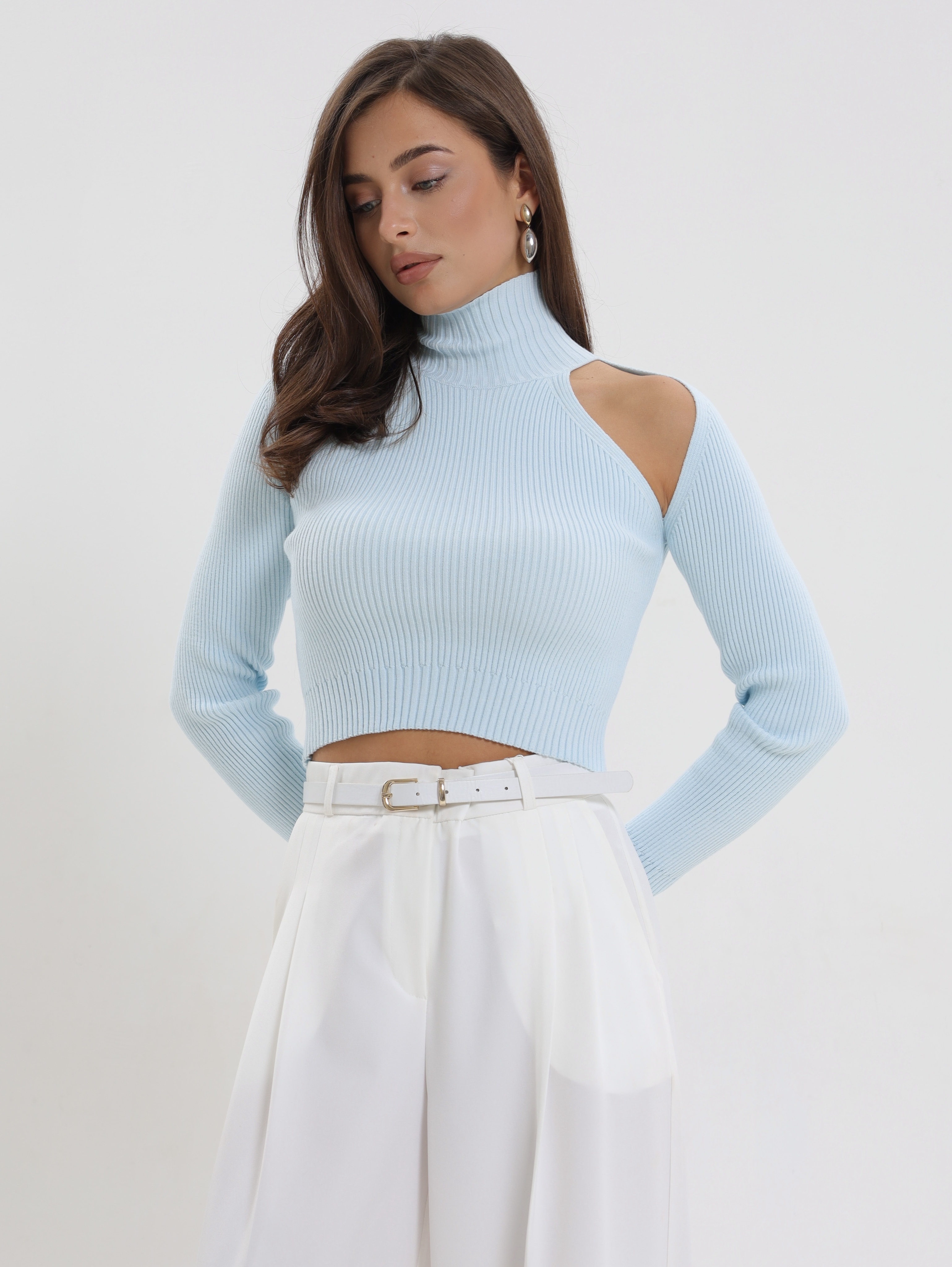 Укороченный приталенный крой чётко обозначает линию талии и легко заправляется, делая образ собранным и современным.