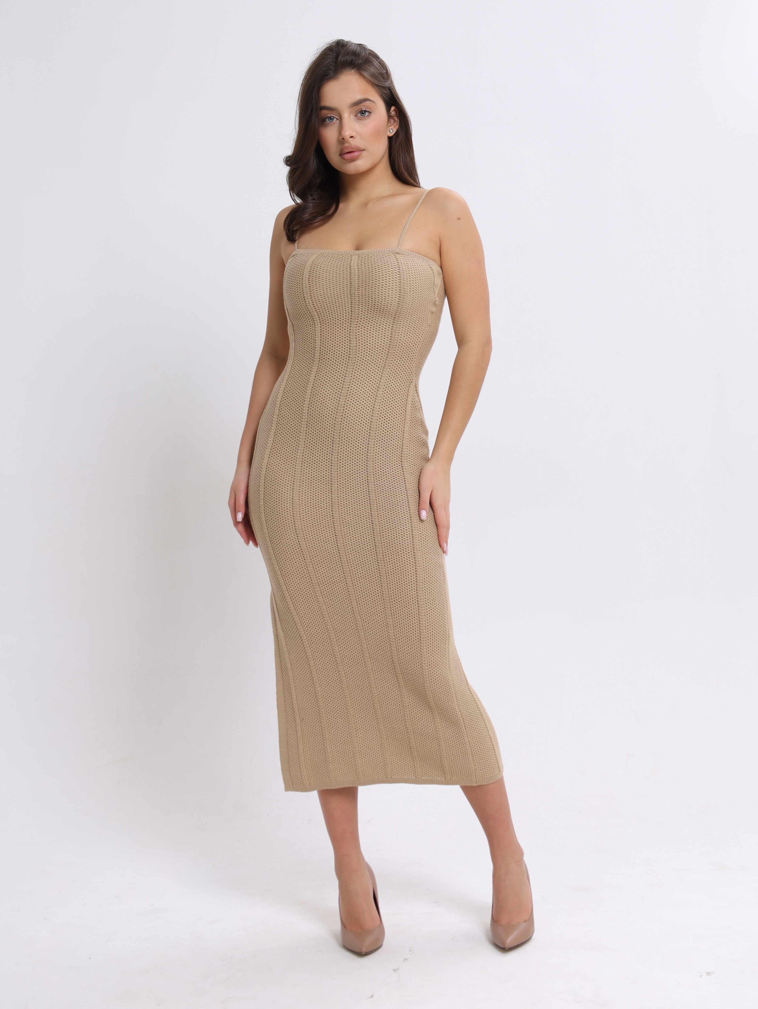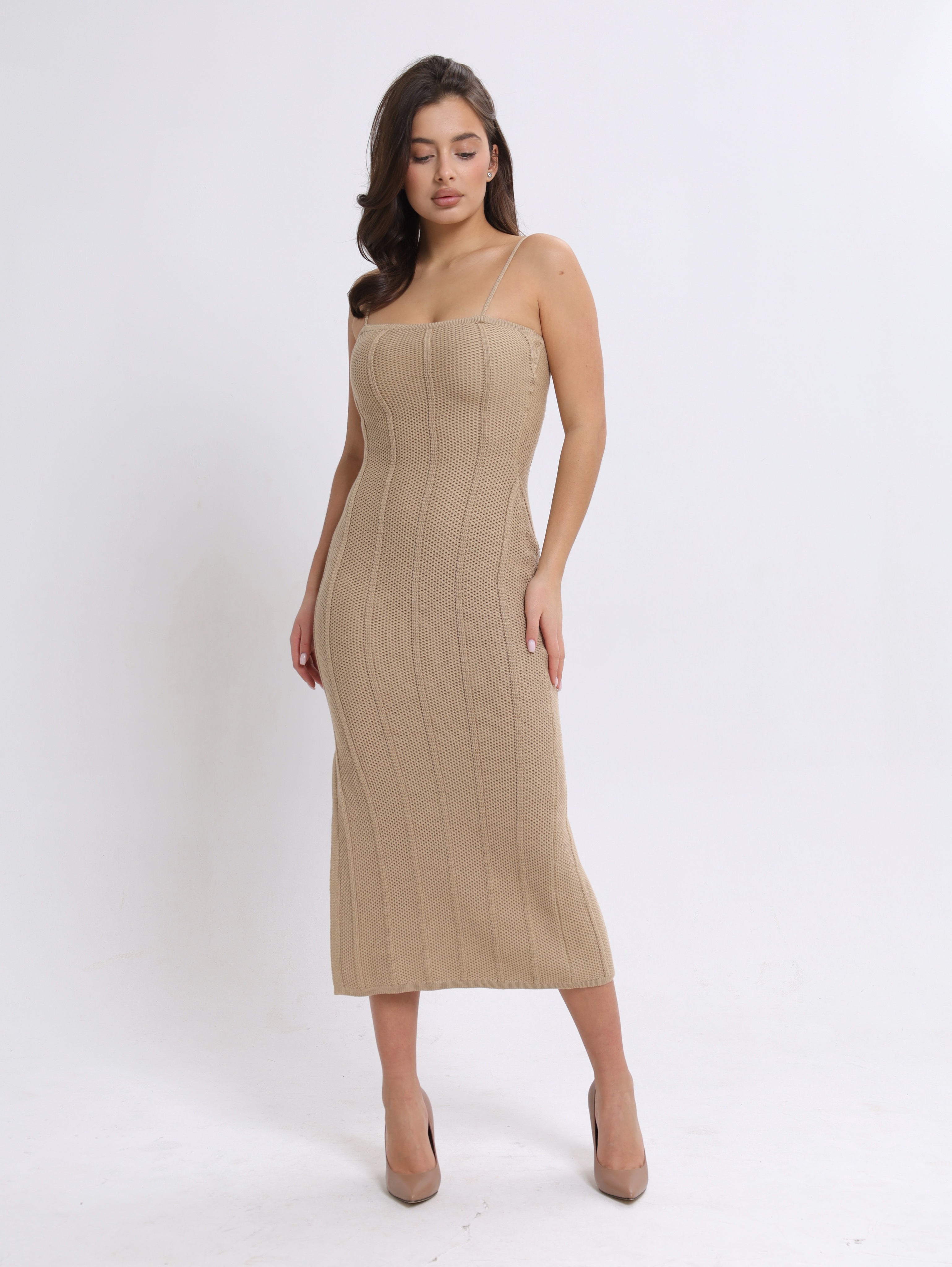 Платье мягко следует линиям тела, подчеркивая достоинства и создавая безупречно женственный образ.